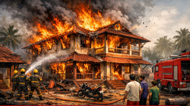 Mapusa, Jan 28: A major fire broke out at a residential house in Nagzarwada, Bhoma, causing property damage estimated at around Rs 8 lac, triggering panic in the area.