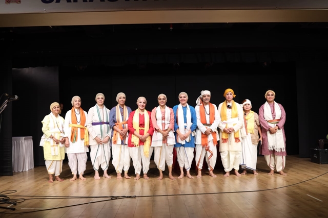 As part of the afternoon cultural programmes, members of the youth and women’s wings presented a colourful display showcasing the rich traditional attire and ornaments of various states from north, south, east, west and central India, which entertained the audience. Under the direction of Geetha Herala and team, children presented a short skit titled ‘Netradana Mahadana’, patriotic songs and dances.