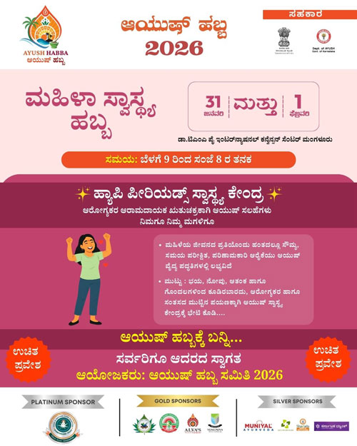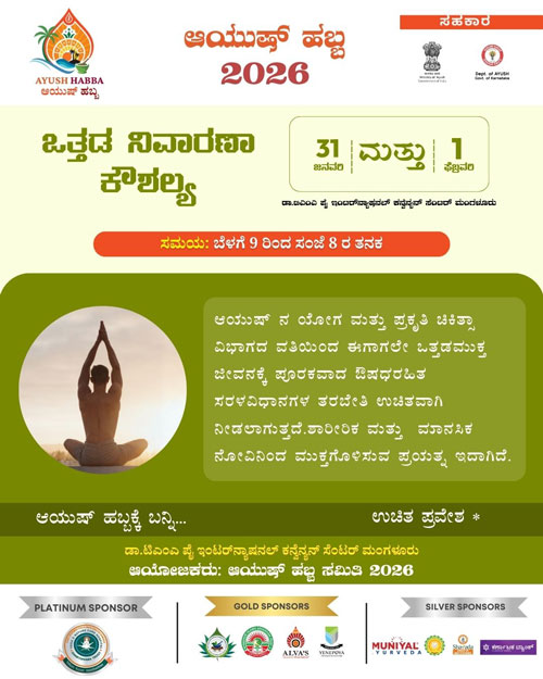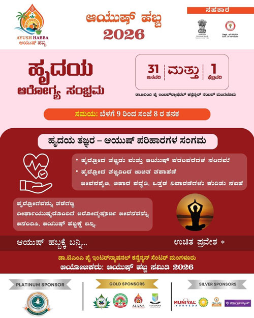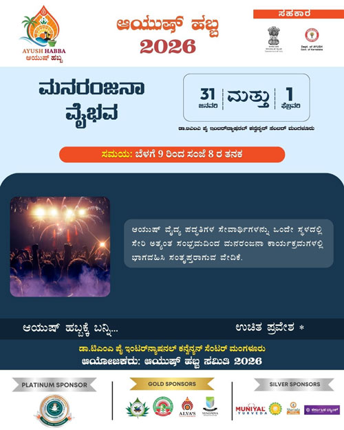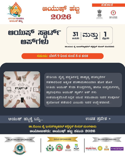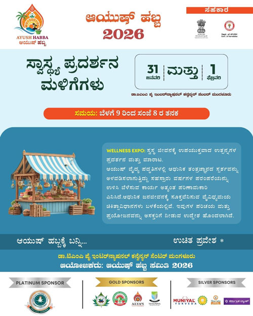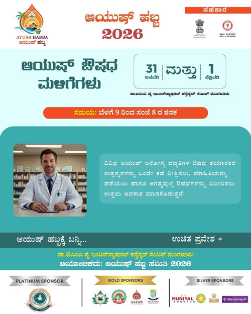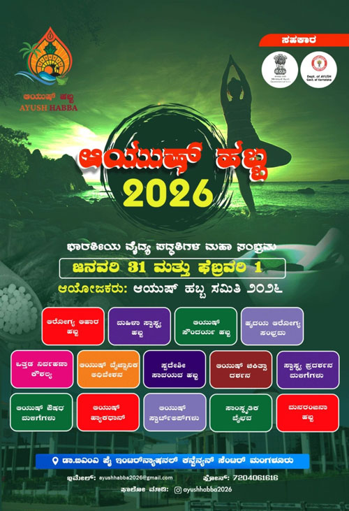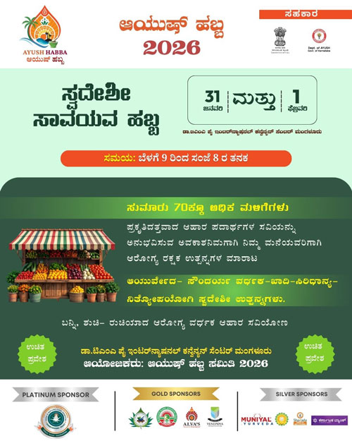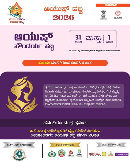 Mangaluru, Jan 30: Ayush Habba – 2026, a grand confluence of Indian systems of medicine aimed at public awareness and celebration towards a healthy society, will be held on January 31 and February 1, at the Dr T M A Pai International Convention Centre, Mangaluru. Entry to the two-day event will be free and open to all.