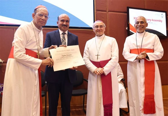The honour was presented at the 37th Plenary Assembly of the Conference of Catholic Bishops of India (CCBI) in Bengaluru by Archbishop Leopoldo Girelli, Apostolic Nuncio to India, in the presence of Cardinal Filipe Neri Ferrão, president of the CCBI, Cardinal Oswald Gracias, and bishops, office bearers and executive secretaries of the CCBI.