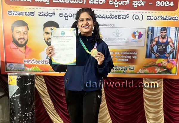 In just a few years, she has built an impressive record. She won bronze in the under 47 kg category with a total lift of 145 kg at the Mangalore University Powerlifting Championship in 2022 and repeated the bronze in the same category with a total of 230 kg in 2023.