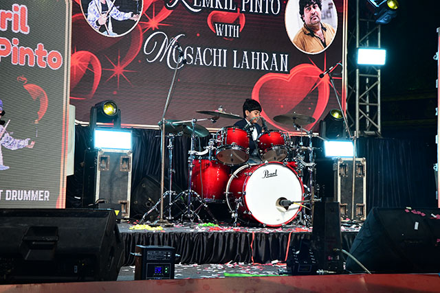 A major highlight of the evening was the extraordinary performance by Kemril Pinto, who held the audience spellbound with a series of powerful drum cover performances spanning multiple genres. Despite his young age, Kemril displayed remarkable maturity, precision, and stage confidence as he seamlessly adapted his drumming to classic rock, pop, soft rock, and contemporary numbers.