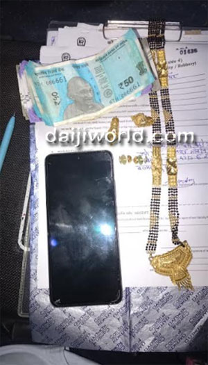 On verification, the stolen items consisting of one Mangalasutra, two sets of earrings, cash amounting to Rs 4,750, and one mobile phone were recovered.