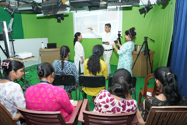 The sessions were facilitated by Fr Anil Ivan Fernandes, director of the Canara Communication Centre. He provided a comprehensive overview of the CCC's history, mission, growth, diverse training programs, and ongoing collaborations. Fr Fernandes demonstrated the practical applications of AI in news reporting and digital media content creation, guiding students through the entire process—from ideation and ethical review to final dissemination. Additionally, he covered the basics of photography, videography, social media management, recording, and editing, giving the students a hands-on look at how modern studios and digital hubs operate.