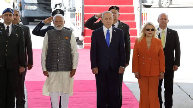 Modi was received by Israeli Prime Minister Benjamin Netanyahu at Ben-Gurion Airport. The two leaders are scheduled to hold talks before heading to Jerusalem, where the Prime Minister will address the Knesset and meet President Isaac Herzog. No meeting with Palestinian leaders is on his schedule.