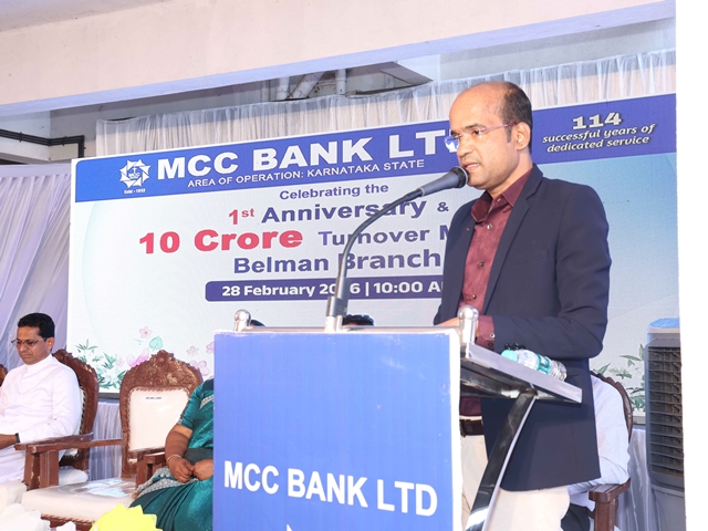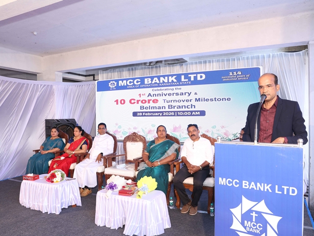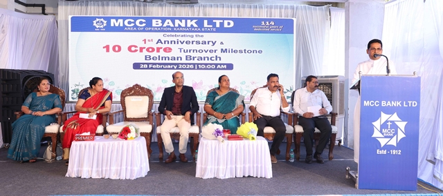 She remarked that while it usually takes a child one year to stand on its feet, MCC Bank Belman Branch has started running within its very first year. As evidence of this rapid progress, she highlighted the remarkable achievement of reaching Rs 10 crore within just 10 months of its opening. She stated that this is not a small accomplishment, but a truly remarkable and appreciable milestone.
