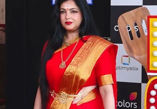 The actress was recently seen on the sets of the cooking reality show, dressed in an elegant red saree adorned with golden embellishments, as she posed for photographers.