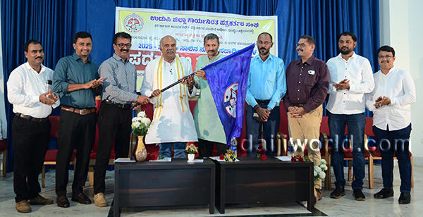 Shivanand Tagadur, Karnataka Working Journalists’ Association president inaugurated the event by handing over the Association's flag to the newly elected president of Udupi district Working Journalists' Association Subramanya G Kurya.
