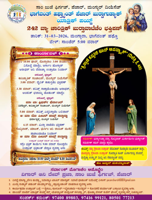 The spiritual journey will begin in the morning at the parish grounds with a spiritual retreat and prayer sessions for pilgrims from 9:00 am to 3:00 pm. At 3:00 pm, the Divine Mercy Rosary will be recited by the Diocesan Charismatic Renewal team, followed by a special Lenten reflection and preaching at 4:00 pm. The solemn Eucharistic celebration will take place at 5:00 pm and will be presided over by Dr Peter Paul Saldanha, bishop of Mangalore.