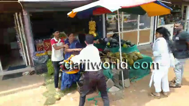A woman associated with the optical shop allegedly damaged fruits kept for sale at the fruit stall, leading to further chaos. In the midst of the scuffle, it is also reported that a man from the optical shop was seen holding a sharp object, raising concerns among bystanders.