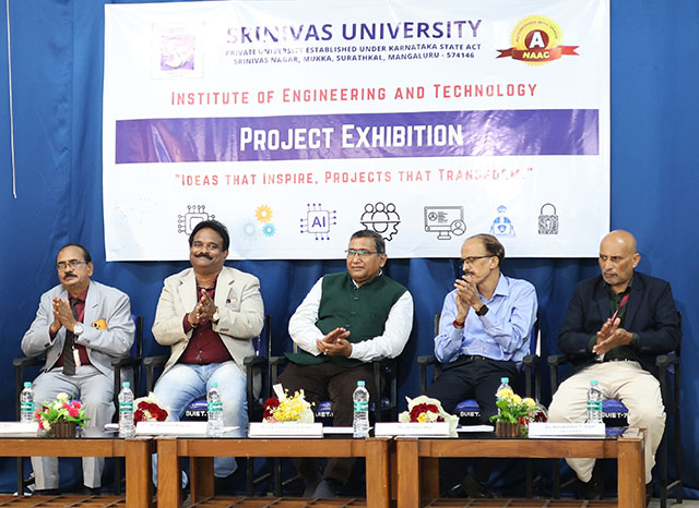 The event witnessed the presence of Dr Praveen B M (director-research, Srinivas University), Dr Naveen Kumar J R (co-coordinator, Project Exhibition-26), judges from other Engineering Colleges, heads of departments, faculty members, staff, and students, making the exhibition a grand success.