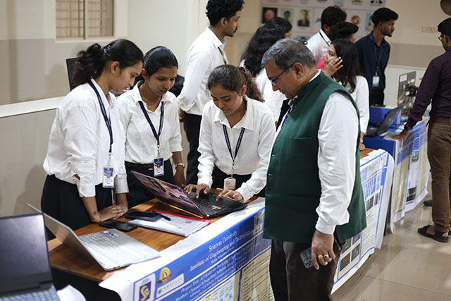 A total of 115 final-year project models were exhibited and demonstrated by students from various branches, including computer science engineering, artificial intelligence & machine learning, cyber security & cyber forensics, electronics & communication engineering, and mechanical & robotics engineering. The exhibition served as a platform for students to present innovative, practical, and industry-relevant solutions. 14 projects have been sponsored by the Karnataka State Council for Science and Technology (KSCST), reflecting the quality, innovation, and societal relevance of the students’ work.