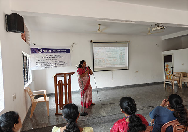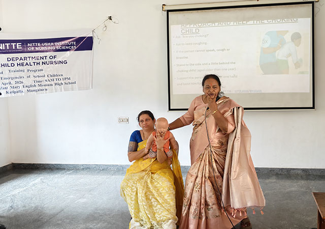 The principal appreciated Nitte Usha Institute of Nursing Sciences for organizing such a meaningful and socially relevant training initiative aimed at saving lives. Prof Dr Sujatha R, head of the department of Child Health Nursing, NUINS, was present on the occasion.
