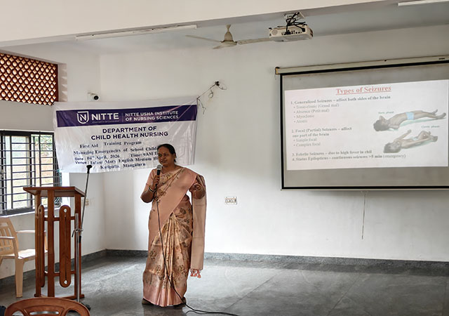 Mangaluru, Apr 4: The Department of Child Health Nursing, Nitte Usha Institute of Nursing Sciences (NUINS), organised a first-aid training programme on managing emergencies of school children for the teachers of Infant Mary English Medium High School, Katipalla, on April 4.
