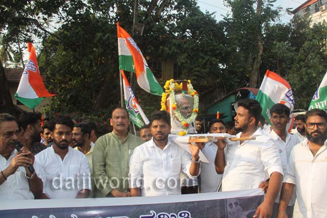 Mangaluru: Youth Congress protests LPG price hike with mock funeral procession