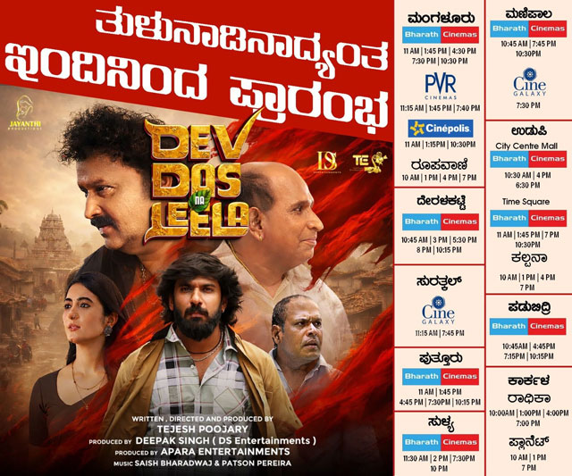Mangaluru, Apr 24: The much-awaited Tulu film ‘Devdas Na Leela’ was released with great enthusiasm on Friday, April 24, at Bharath Cinemas. A large gathering of cinema lovers attended the first-day, first-show screening.