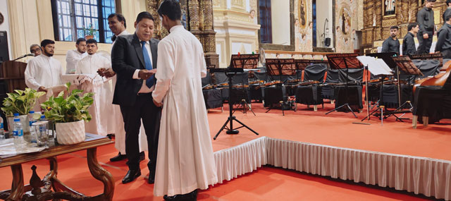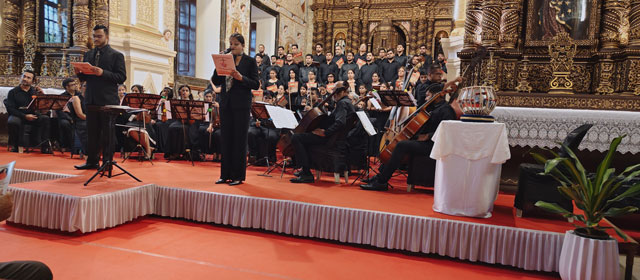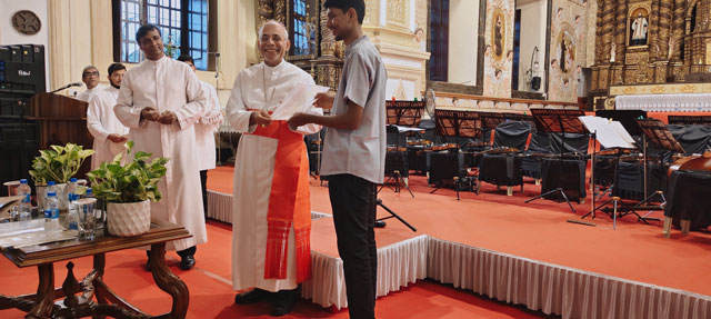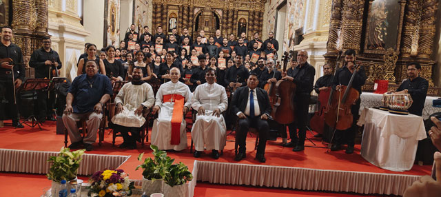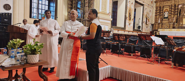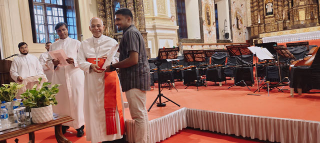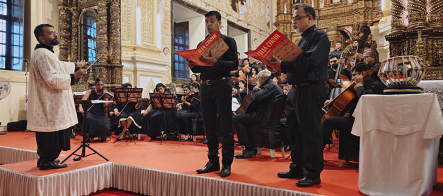 Fr Donato Rodrigues, rector of the Patriarchal Seminary of Rachol, welcomed all. Deacon Ryan Mascarenhas and Stacy Fernandes anchored the event. Fr Mathew Rebello, choir director thanked all.