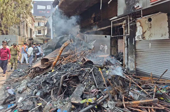 The blaze reportedly started due to an electrical short circuit in a plastic goods storage godown owned by Bhima, a businessman originally from Rajasthan, on Sunday evening. The fire completely gutted his plastic shop and mobile shop, both owned by him. Two to three nearby shops were also damaged, resulting in huge losses.