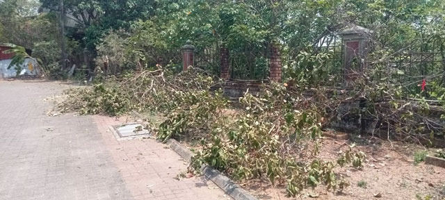 Despite clear directions not to cut any trees or plants, the felling of trees was viewed seriously. Departmental inquiry has been ordered against the member secretary of the core committee of the district office complex, and two outsourced staff members have been dismissed from service, Additional Deputy Commissioner Abid Gadyal said in a statement.