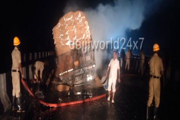 ಕುಂದಾಪುರ : ಉಪ್ಪುಂದ - ಬಿಜೂರು ರಾ.ಹೆದ್ದಾರಿಯ ಸೇತುವೆ ಮೇಲೆ ಹೊತ್ತಿ ಉರಿದ ಲಾರಿ