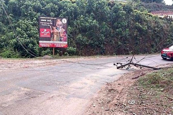 ಸುಳ್ಯ : ವಿದ್ಯುತ್ ತಂತಿಗೆ ತಾಗಿದ ಬಸ್ - ರಸ್ತೆಗೆ ಬಿದ್ದ ಕಂಬ