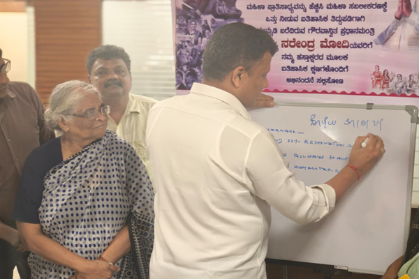 ವಿವಿಧ ಕೆಲಸಗಳ ನಿಮಿತ್ತ ಸಂಸದ ಕ್ಯಾ. ಚೌಟ ಅವರನ್ನು ಭೇಟಿ ಮಾಡಲು ಬಂದಿದ್ದ ಮಹಿಳೆಯರು, ಕೇಂದ್ರ ಸರ್ಕಾರದ ಐತಿಹಾಸಿಕ 'ನಾರಿ ಶಕ್ತಿ ವಂದನ್ ಅಧಿನಿಯಮ' ಜಾರಿಯಾಗುತ್ತಿರುವ ಸಂದರ್ಭದಲ್ಲಿ ಮಹಿಳೆಯರು ಸ್ವಯಂಪ್ರೇರಿತರಾಗಿ ಸಹಿ ಸಂಗ್ರಹ ಅಭಿಯಾನದಲ್ಲಿ ಭಾಗವಹಿಸಿ, ಮಹಿಳೆಯರಿಗೆ ರಾಜಕೀಯದಲ್ಲಿ ಹೆಚ್ಚಿನ ಪ್ರಾತಿನಿಧ್ಯ ನೀಡುತ್ತಿರುವ ಪ್ರಧಾನಮಂತ್ರಿ ನರೇಂದ್ರ ಮೋದಿ ಅವರ ನೇತೃತ್ವದ ಸರ್ಕಾರಕ್ಕೆ ಅಭಿನಂದನೆ ಸಲ್ಲಿಸಿದ್ದಾರೆ. ಕಳೆದ ದಶಕದಲ್ಲಿ ಭಾರತವು ಕೇವಲ ಮಹಿಳಾ ಕಲ್ಯಾಣದ ಹಂತದಿಂದ ಮಹಿಳಾ ನೇತೃತ್ವದ ಅಭಿವೃದ್ಧಿಯತ್ತ ದೃಢವಾದ ದಾಪುಗಾಲು ಹಾಕಿದ್ದು, 'ನಾರಿ ಶಕ್ತಿ'ಯ ನವೋದಯಕ್ಕೆ ಸಾಕ್ಷಿಯಾಗಿದೆ ಎಂದು ಪಾಲ್ಗೊಂಡ ಮಹಿಳೆಯರು ಅಭಿಪ್ರಾಯ ವ್ಯಕ್ತಪಡಿಸಿದ್ದಾರೆ.