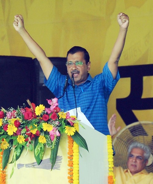 "After 12 years, we have assembled at Ramlila Ground. Last time we assembled to fight against corruption, this time we have assembled to fight against a tyrant, to protect democracy and the constitution," Kejriwal said.