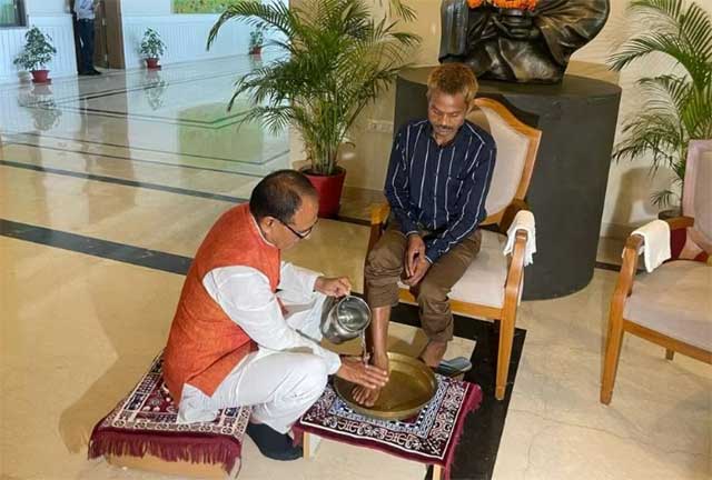 Bhopal, Jul 6 (IANS): Madhya Pradesh Chief Minister Shivraj Singh Chouhan on Thursday met Dashmat Rawat, the tribal labourer on whom a man had urinated, and apologised and washed his feet at his official residence here.