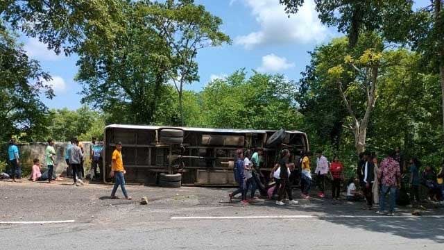 "After receiving the information that a school bus has met with an accident at Chandahandi Ghati, our team immediately reached the spot. All the students and other persons traveling in the bus have suffered injuries and were rushed to hospital," said a local fire services official.