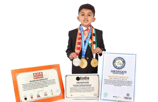 Nathan's achievements don't stop there. He has been conferred the ‘Grand Master’ title by the Asia Book of Records for solving and writing the answers to 50 addition and subtraction sums (involving single and double digits) within 4 minutes and 44 seconds at the age of 4 years and 9 months. This feat also earned him a place in the India Book of Records under the same title and time frame.