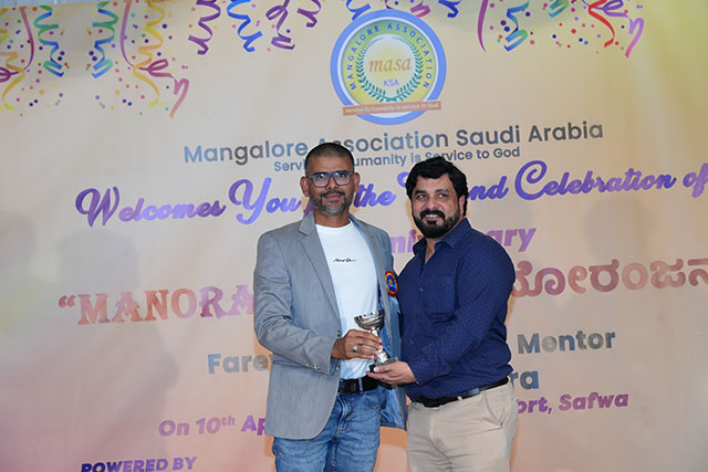 Saudi Arabia, Apr 24: Mangalore Association Saudi Arabia (MASA), an association formed to serve for noble cause, launched on October 22, 2006 have celebrated its 18th Anniversary titled ‘MANORANJANE’ on Thursday, April 10 with a colorful celebration, along with warmth farewell to its one of the founder members, mentor, contributor Ravi Karkera. The enthusiastic crowd gathered at Saadi Resort Safwa to witness the gala event. Recognitions of members by giving away, academic excellence awards to students, special achievement awards, Masa Man of the year award, raffle draw, exciting and thrilling cultural events, emotional farewell to Ravi Karkera along with his family members were the main highlights of the evening.