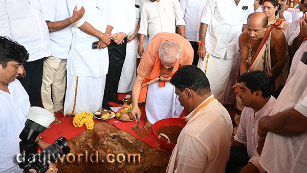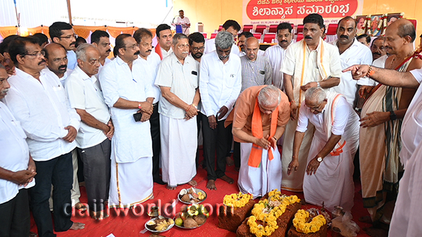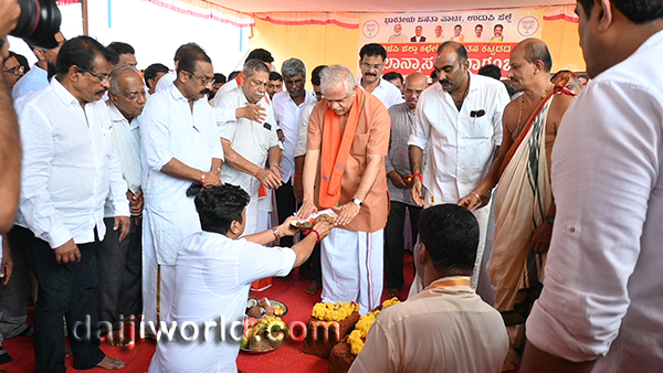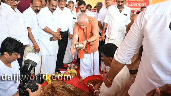 BJP national general Secretary B L Santhosh, along with MP Kota Srinivas Poojary, MLAs and other party leaders performed the Bhoomi Pooja ritual.