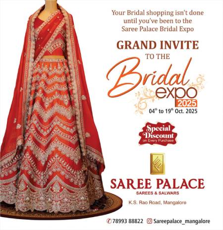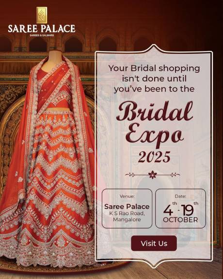 Influencers are also encouraged to showcase the wide product range, the elegant in-store experience, and the vibrant festive atmosphere, while tagging @sareepalace_mangalore and using hashtags #BridalExpo2025 and #SareePalace.
