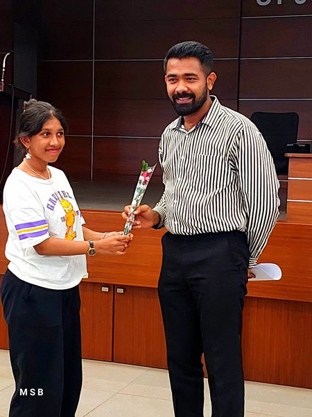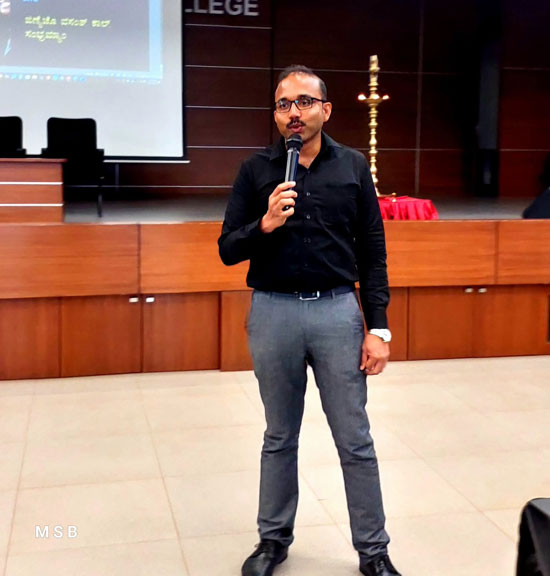 The first session was conducted by Melrida Rodrigues, lecturer at Srinivas Medical College, who was welcomed with a rose by one of the students. She spoke about good and bad habits, emphasizing how positive habits shape one’s faith, discipline, and growth. Through engaging examples, she encouraged students to cultivate habits that lead to a purposeful and faith-filled life.