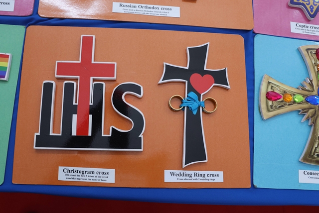 • A collection of crosses, signifying the deep connection between Mary and the Cross.