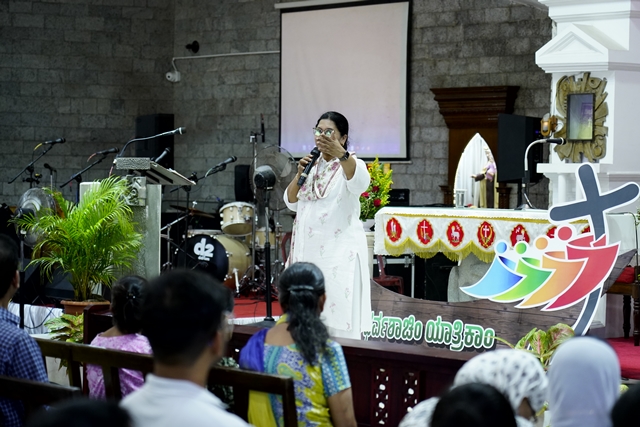 Maria Sangeeth, addressing the youth and young adults, spoke passionately about the centrality of the holy Eucharist in a Christian’s life. She reminded the faithful that true strength and transformation flow from a heart united with Jesus in the Blessed Sacrament.