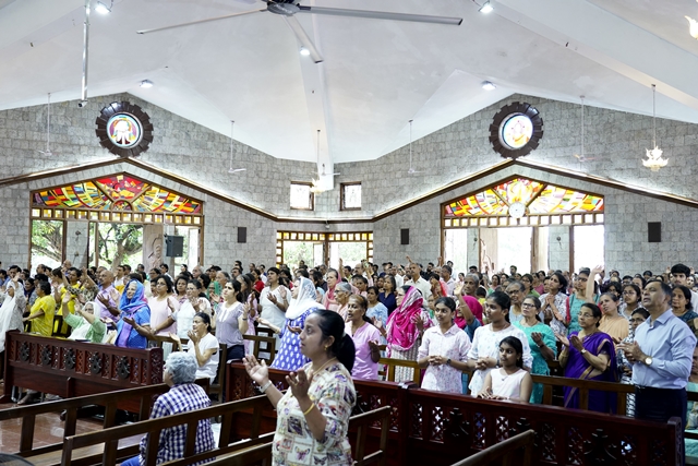 He was accompanied by Maria Sangeeth, Director of Divine Youth, and the world-renowned Faith Band from Goa, who conducted vibrant sessions of praise and worship that filled the Shrine campus with joy, music, and prayer.