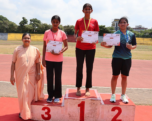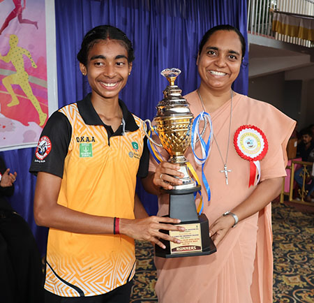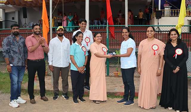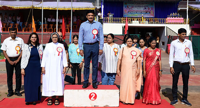 Sr Dr Maria Roopa AC, in her inspiring address spoke about the power of discipline & the joy of healthy living that sports instil. She emphasized that engaging in sports play a vital role in shaping an individual's personality, teaching lessons of teamwork, perseverance, resilience, courage, unity & strength. She reminded the students that participation itself is a great honour and that every athlete discovers their true potential through such opportunities.