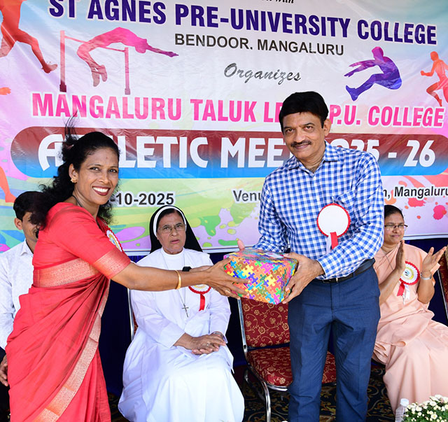 Mangaluru, Oct 9: The Mangaluru Taluk Level Inter PU College Athletic Meet 2025-26 was organized by the department of School Education (PU), DK District, Mangaluru in association with St Agnes PU College, Bendore, Mangaluru at Mangala Stadium, Mangaluru. The meet brought together athletes from various pre-university colleges across the taluk, promoting the spirit of sportsmanship, teamwork and perseverance.