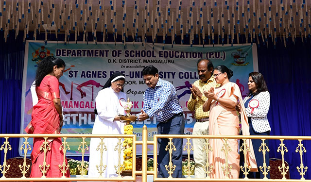 Sr Norine D’Souza, principal, Sr Janet Sequeira, vice principal, St Agnes PU College, Premnath Shetty, sports coordinator, PU Education, DK District, Subraya Kamath, sports coordinator, Mangaluru Taluk, Shabnam, PTA vice president, St Agnes PU College, Jayashree, PE, St Agnes PU College were the other dignitaries on the dais.
