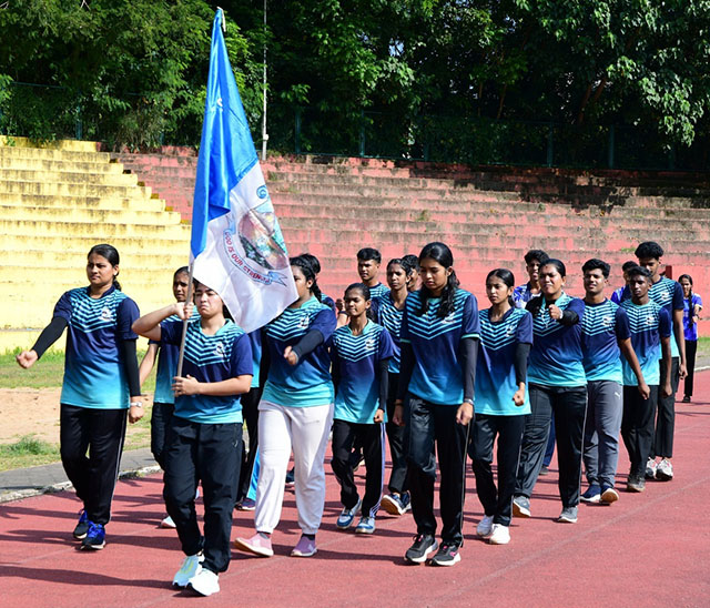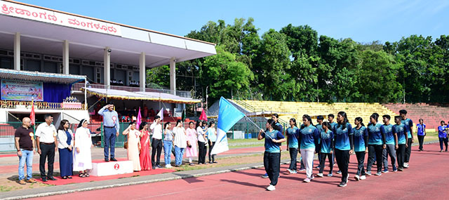The inaugural ceremony commenced with the guard of honour to welcome the dignitaries. This was followed by an impressive march past by contingents from various colleges showcasing discipline & co-ordination. The flag hoisting was done by the chief guest, Naveen Shetty, president, DK District Basketball Association and Sr Dr Maria Roopa, joint secretary, St Agnes Institutions.