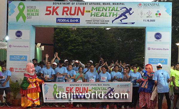 Udupi, Oct 12: The Department of Student Affairs, Manipal Academy of Higher Education (MAHE) Manipal, an Institution of Eminence Deemed to be University, in association with KMC Sports Committee, FIT VIB KMC MAHE Manipal, and Student Support Team MAHE Manipal, successfully organized the Mental Health Awareness Run 2025 on October 12 at the EDU Building, MAHE Campus. The 5K run, held as the culminating event of MAHE's Mental Health Awareness Week (October 5 to 11), brought together over 1,000 participants including students, staff, their families, and students from nearby schools and colleges in a powerful demonstration of collective commitment to mental well-being.