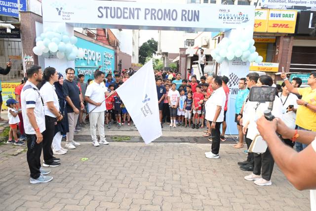 Mangaluru, Oct 12: In a heartwarming display of energy, enthusiasm, and community spirit, Yenepoya World School, in collaboration with the Niveus Mangalore Marathon, hosted the Student Promo Run on Sunday, October 12, at Yenepoya Speciality Hospital, Kodialbail.