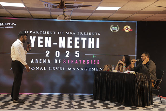 Mangaluru, Oct 15: The Department of MBA at Yenepoya Institute of Arts, Science, Commerce and Management (YIASCM) successfully organized YEN- NEETHI 2025 “ARENA OF STRATEGIES”, a national level management fest on October 13. The fest provided a dynamic platform for management students across the country to exhibit their leadership, analytical and strategic abilities.