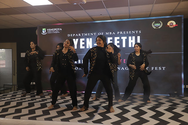The chief guest, Dr B H Sripathi Rao, pro vice-chancellor, Yenepoya (Deemed to be University), and the guest of honour, P B Ahmed Mudassar, president, KCCI, Mangaluru, addressed the gathering, highlighting the importance of experiential learning in management education. Prof Jeevan Raj, principal (I/C), delivered the presidential remarks, appreciating the team’s efforts in organizing a fest that fosters academic and professional excellence. The session concluded with a vote of thanks and a graceful welcome dance.