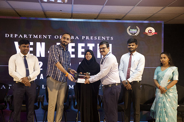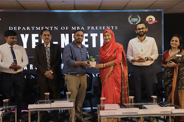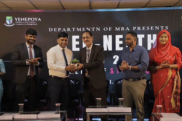 The valedictory ceremony, marked the grand conclusion of the fest. The session began with reflections from participants who appreciated the platform for its competitive spirit, learning opportunities, and professional exposure. Prof Niyaz Panakaje, coordinator of YEN-REFINED & MBA, commended the organizing team for their collective efforts, while Prof Shareena P, dean, Faculty of Commerce and Management and vice principal, acknowledged the participants’ enthusiasm and highlighted the importance of such events in shaping managerial competence. The chief guest, Vishwas U S, founder director of Section Infin–8 Foundation, delivered an insightful address on innovation and leadership in the modern business landscape. The guest of honour Maimoona Majeed, the sole proprietor of Majeed Farms graced the occasion with her presence. The ceremony concluded with the distribution of prizes and appreciation of convenors.