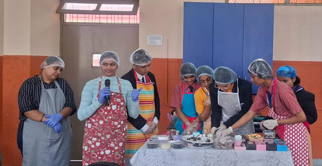 The in-house hands-on training workshop was conducted by Khyati Harsora, founder of Rainbow Delight, who guided students through every stage of chocolate making from tempering and moulding to filling and decorating while emphasizing healthier alternatives and the use of natural ingredients.