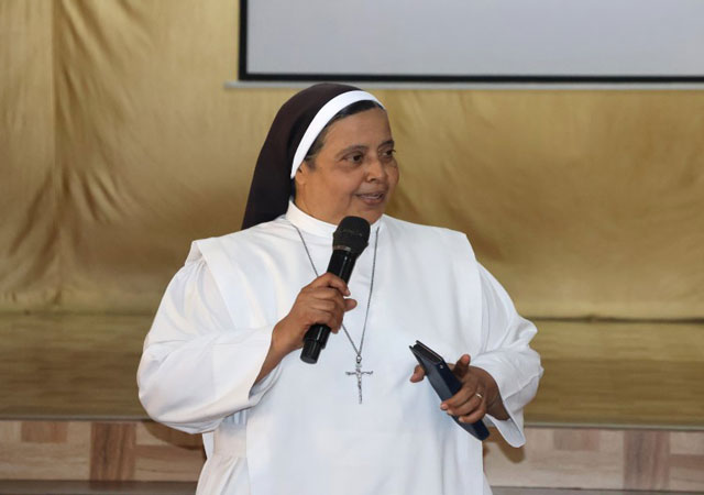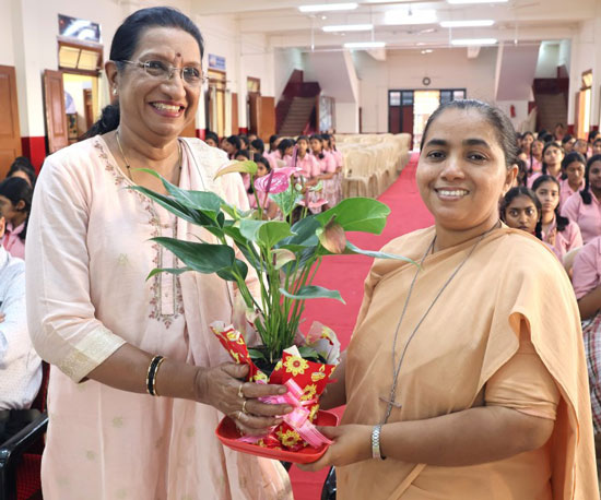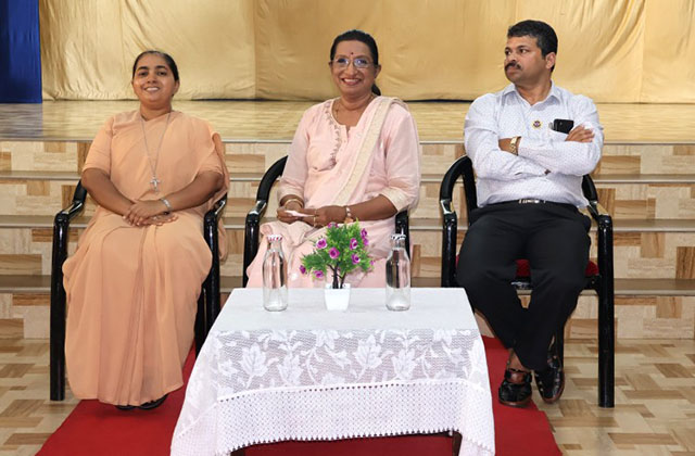 Dr Shekhar, who has conducted over 2,700 sessions on mental health, stress management, and family relationships, and is a recipient of the "Best Educationist Award" from the Global Society for Health and Education Growth, New Delhi, was welcomed florally by the vice principal, Sr Meena Fernandes AC while Lion Suresh, the programme coordinator of Manomitram, was also accorded a floral welcome.