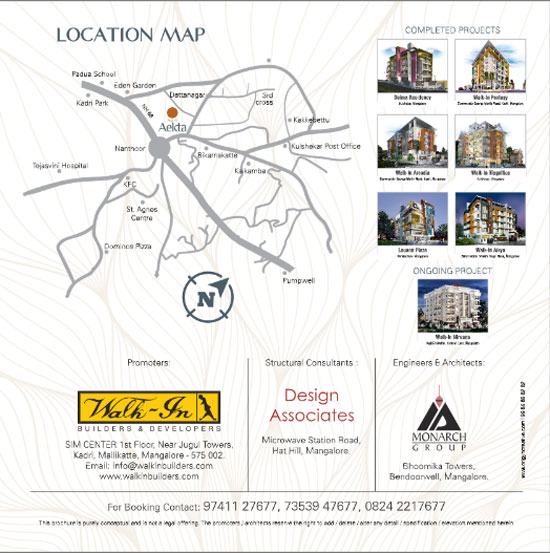 Creating landmarks and building trust, Walk-In Builders & Developers have already completed several iconic projects across Mangaluru, including Delma Residency (Kulshekar), Walk-In Fantasy and Walk-In Arcadia (Kadri), Walk-In Magnifica (Kulshekar), Louann Plaza (Pandeshwar), and Walk-In Aikya (Bikarnakatte). Their ongoing project, Walk-In Nirvana at Kadri Kaibattal, continues the legacy of creating spaces that inspire and delight.