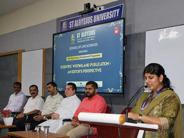 Mangaluru, Oct 18: The School of Life Sciences, St Aloysius (Deemed to be) University, organized a one-day Faculty Development Programme (FDP) on ‘Scientific writing and publication: An editor’s perspective' on October 17 at Sanidhya Hall.